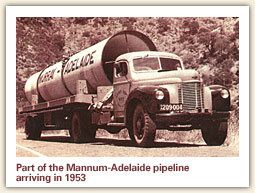 Walk up to the junction of Berryman and Ramm Road. Continued up Ramm Road past Anne and Little Anne Streets. Follow the sign pointing right to Murray Park. Walk between the rocks and the small park until you reach Reed Avenue which leads off Elizabeth Street. Turn right. Notice the Mannum – Adelaide Water Pipeline, completed in 1954.